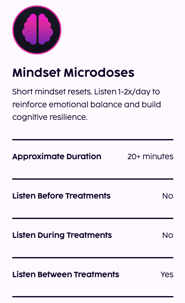 Mindset Microdoses are shorter skill building lessons to help build self- regulation and emotional resilience for long term stress-reduction.